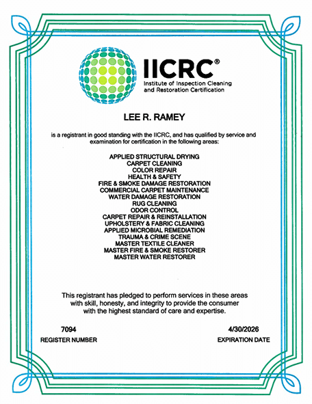 Known as the “Mil-Dude,” Lee is the managing member of Mold & Mildew Solutions as well as president of Ramey Cleaning Incorporation dba To The Rescue.
