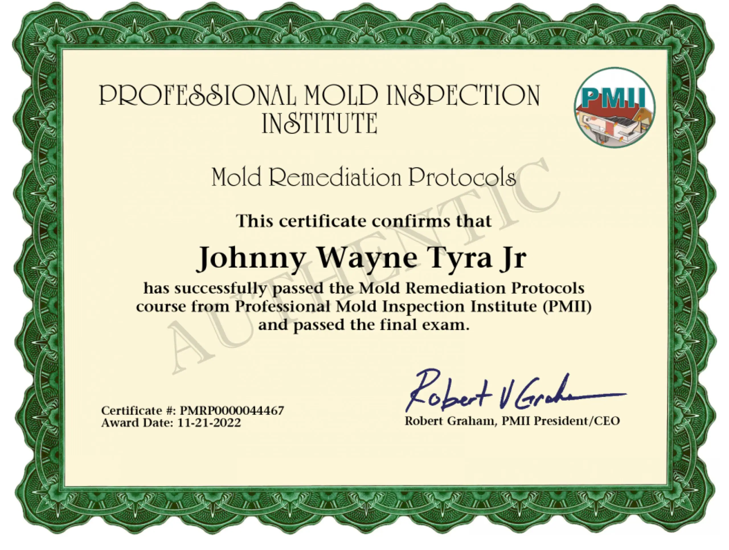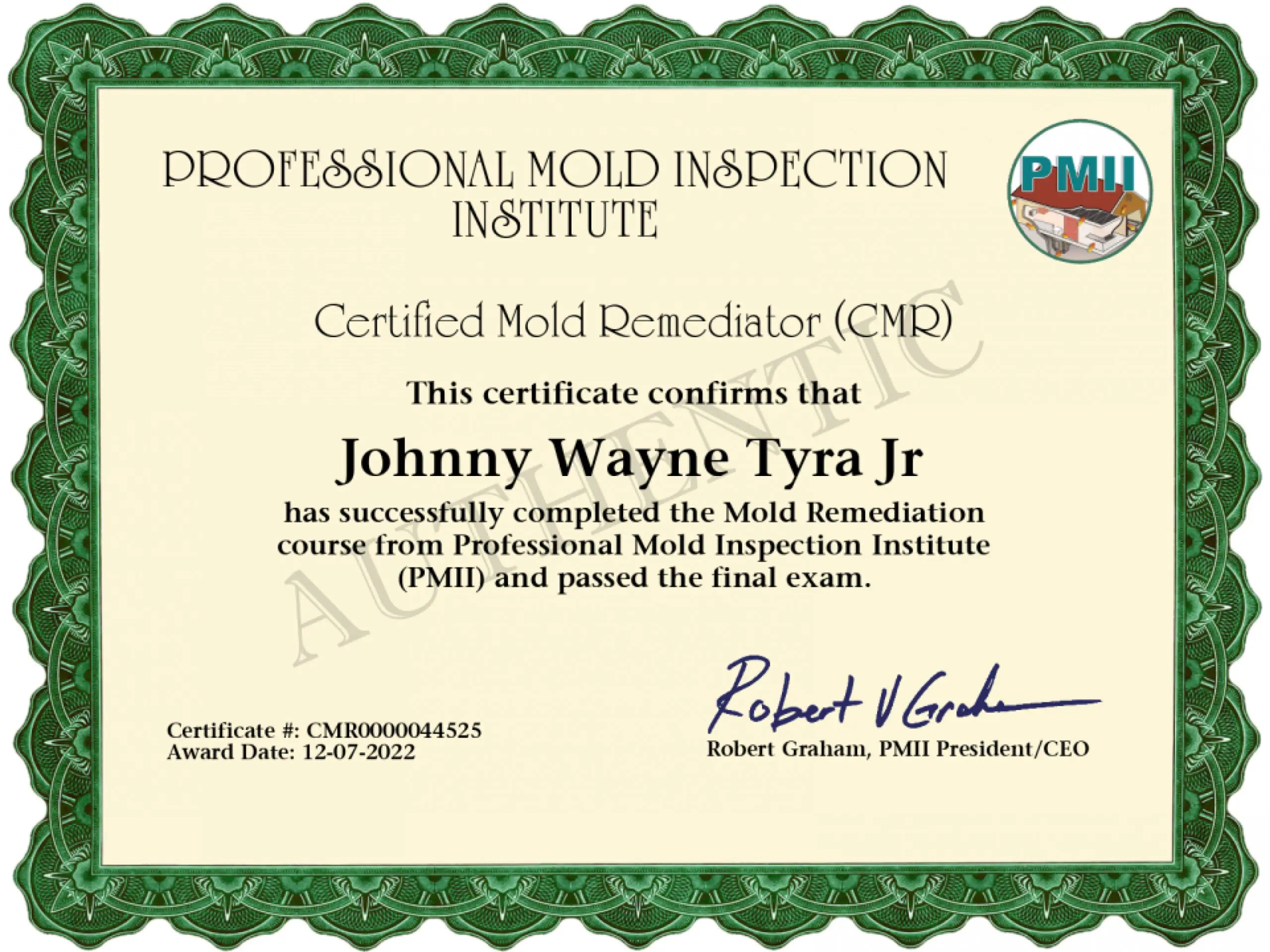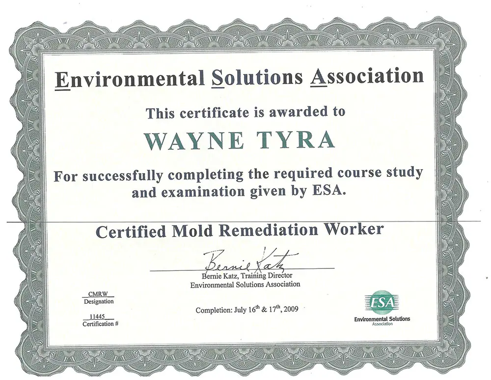 Wayne and his wife, Gina, have been married for  25+ years and have one daughter, Cloe. I have been with the company for 17 years (started in 2008). His experience and certifications are a great value to customers of Mold and Mildew Solutions. When not working, Wayne enjoys playing golf and traveling with his family.